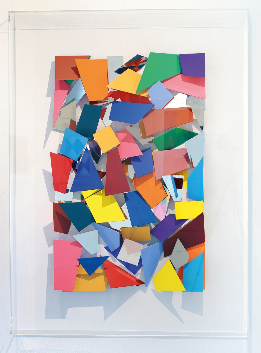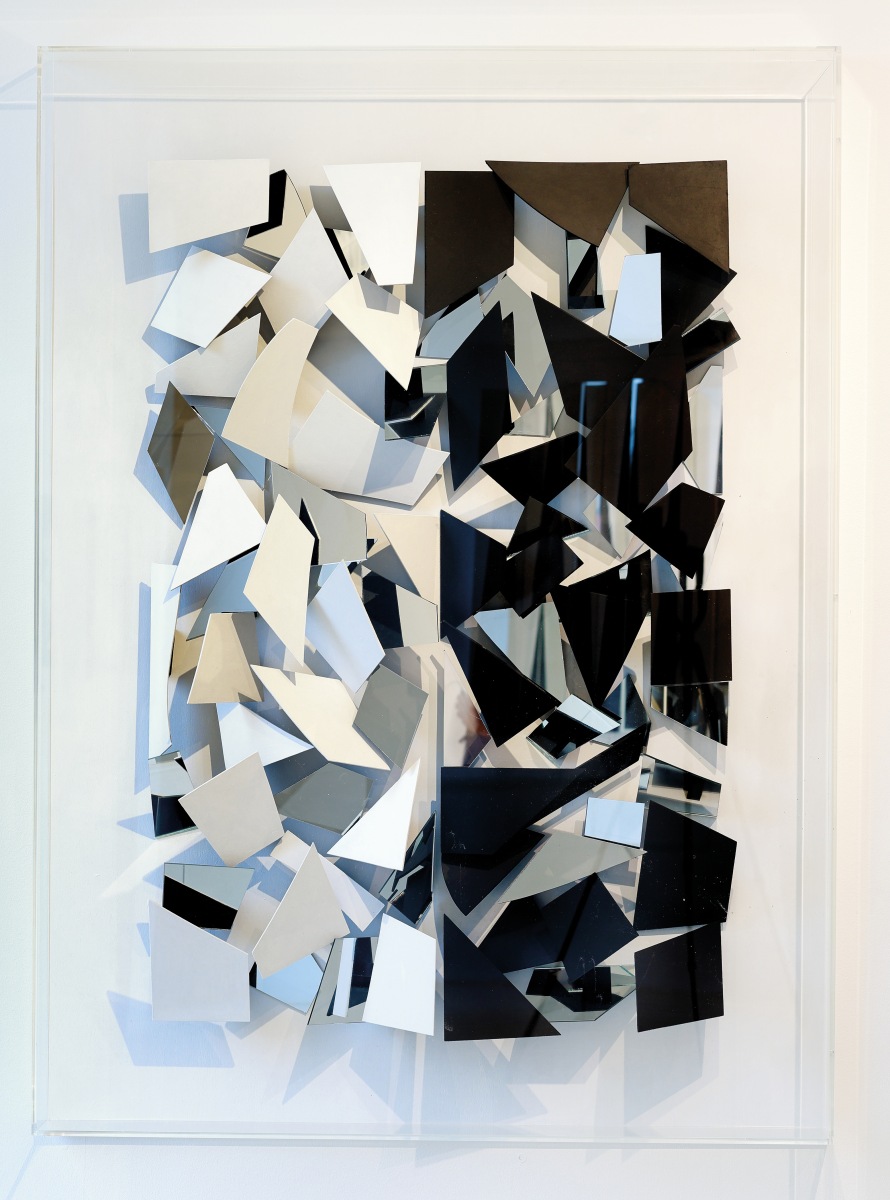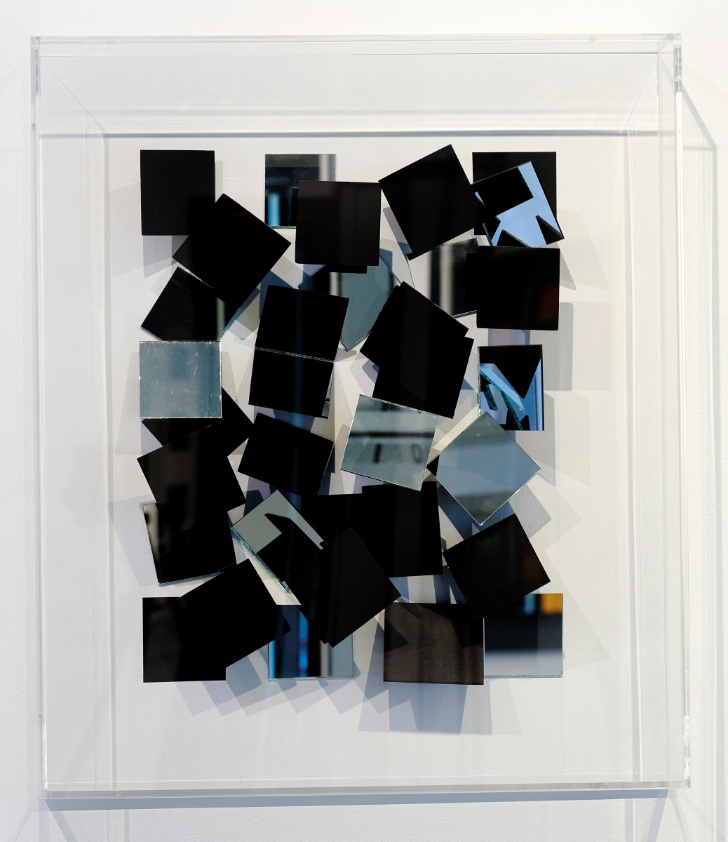 Holz, Spiegel, Acrylfarbe unter Plexiglas, 153 x 113 x 13 cm