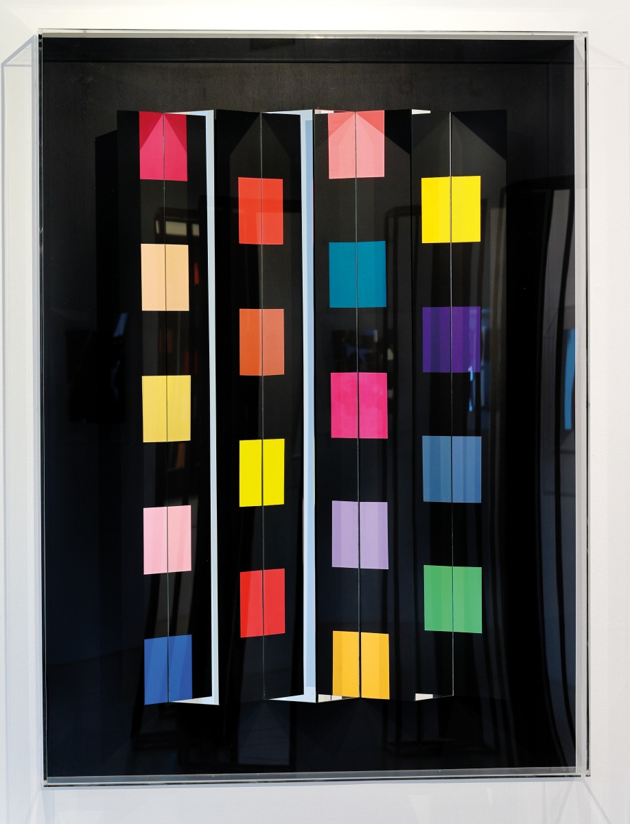 Am Stand sind jüngste Bildobjekte aus den letzten Jahren zu sehen, aber auch das für die Biennale 2026 geplante großformatige Fächer-Bild (in 180 x 180 cm), sowie Lichtwerke im Zusammenhang mit der Biennale-Präsentation.
