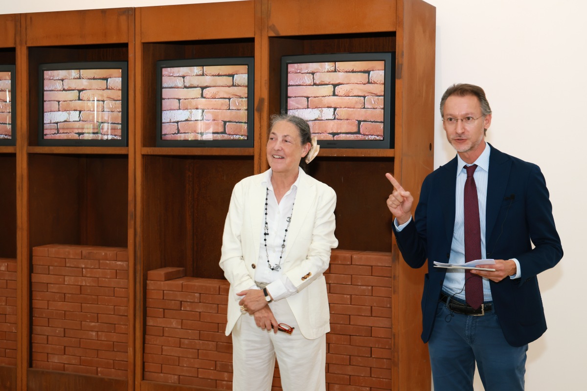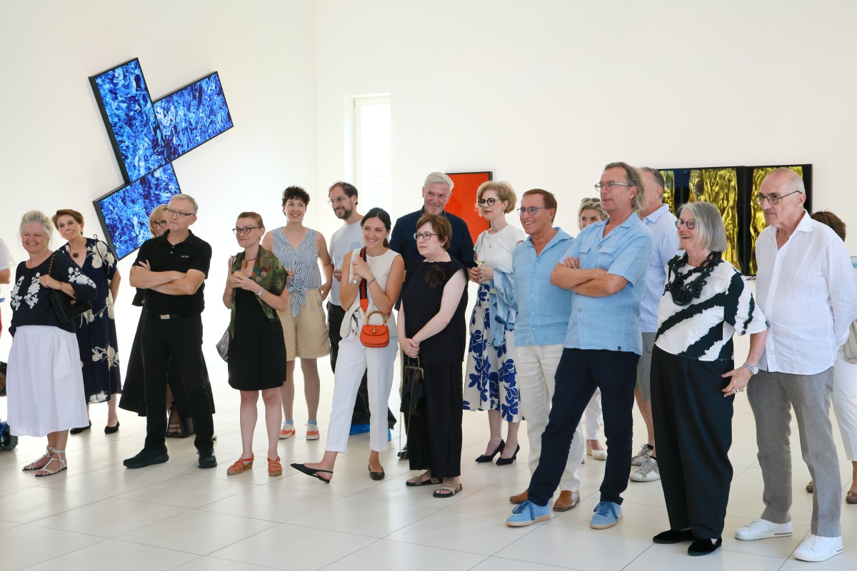 Last but not least hatte das Festpublikum die Ehre, den italienischen Generalkonsul in Frankfurt am Main, Massimo Darchini, in der Cadoro zu begrüßen. Im Erdgeschoss eröffnete er mit ehrenvollen und fachkundigen Worten die neue Schau von Fabrizio Plessi unter dem Titel Historische Werke und Neuerfindungen und übermittelte den Besuchern Grüße des Wahlvenezianers, mit dem er kurz zuvor noch telefoniert hatte.